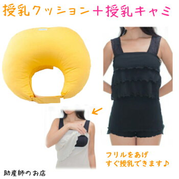 【2000円引】青葉製 授乳クッション 黄色無地+オープン授乳キャミソール(肩レース)2点set あす楽 授乳 マタニティ 妊婦 妊娠お祝い 出産祝い のギフトにおすすめ