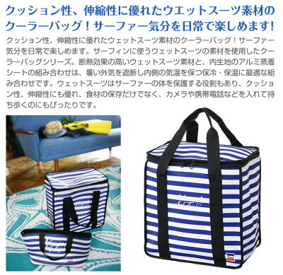 【特徴】 クッション性、伸縮性に優れたウェットスーツ素材のクーラーバッグ! サーファー気分を日常で楽しめます。